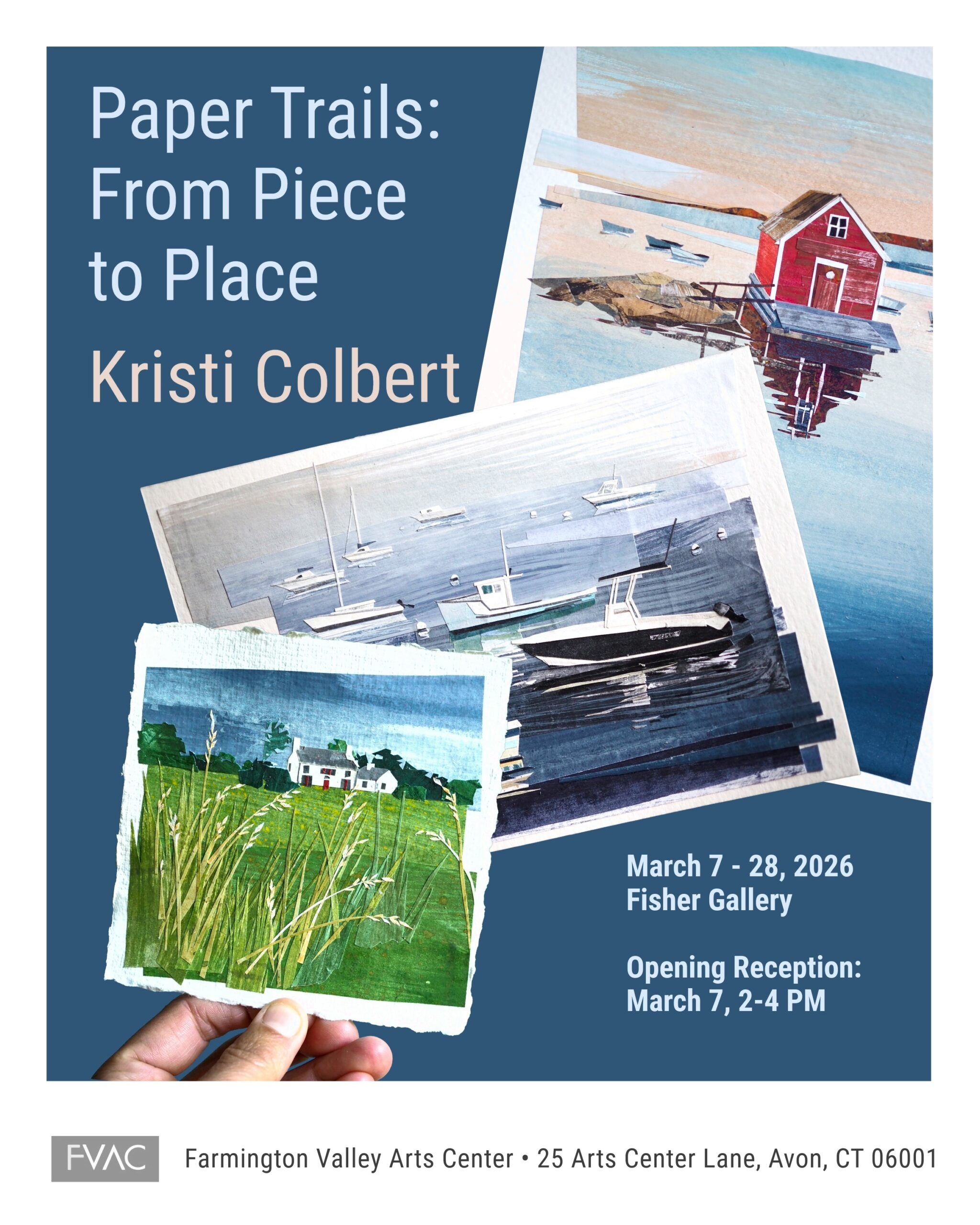 Composed entirely of junk mail painted with gouache, colored pencil, and neocolor crayon, Kristi W. Colbert’s work explores the wonder of place, as familiar and quietly transportive landscapes, seascapes, and cityscapes emerge from reclaimed paper fragments. In both its process and aesthetic, the work is brought to life through dualistic synergies. It is painterly and sculptural; deconstructive and reconstructive, realistic and abstract; intricate and unfussy. It is a record of places traveled and a map to what lies ahead. And, situated in a time of such global upheaval, it is an energetic manifestation of hope and repair, transforming simple scraps into something whole again. In all, Kristi’s work is a gentle reflection on place, restoration, and the beauty that can emerge from what might otherwise be overlooked.
